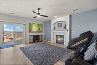 Gas fireplaceHome officePrivate balconyOpen kitchenStainless steel gas rangeVinyl wood floorsExpansive glorietta floorplan