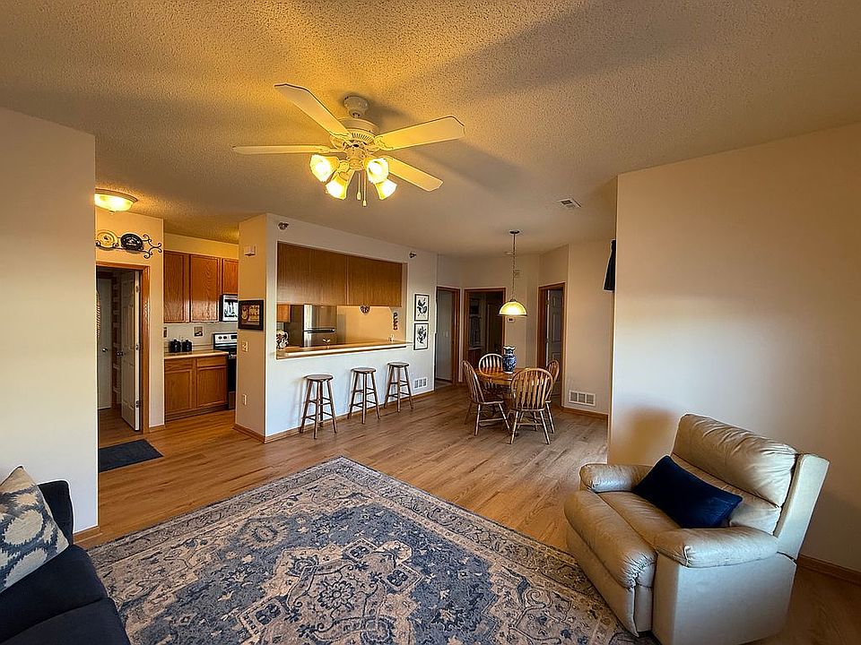 Very clean and recently updated 2 bedroom, 2 full bathroom condo. Ground-level access for easy entry and exit. New flooring and paint throughout. New stainless steel appliances in kitchen. 1-car garage and 1 parking space are included. Lawn care and snow removal are taken care of, saving you time and effort. Located in Delaware Park, a great Ankeny location, offering easy access to amenities, schools, and I-35.