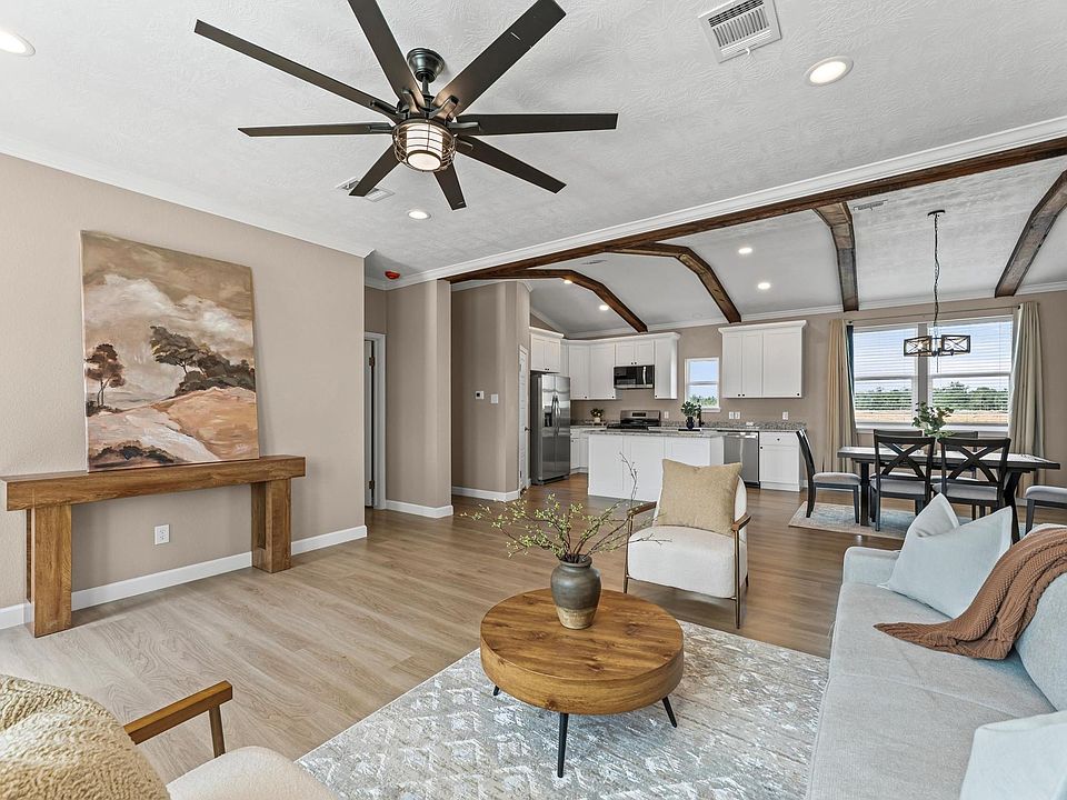 Stunning new construction modular home offering 1,808 SF of living space with 4 bedrooms and 2 bathrooms on a spacious 14,000 SF lot. This home is built with quality materials and features an open-concept design, no carpet, vinyl flooring, and modern LED lighting throughout. The large kitchen boasts granite countertops, stainless steel appliances, abundant cabinetry, and a center island that opens to the living and dining area, perfect for entertaining. The spacious primary suite includes a walk-in closet, double vanity, while three additional bedrooms and a second full bath provide comfort and flexibility. With no HOA, no restrictions, a low tax rate, and located outside the flood zone, this property combines style, quality, and freedom all in one.