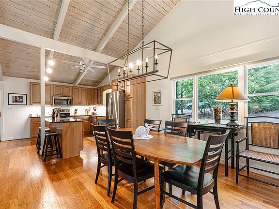 Mountain Life at its finest! This well-maintained home is located on Hole 6 of High Meadows Golf and Country Club. Watch the mountains come to life in the Spring, enjoy being outdoors all summer with mild temperatures, the trees glow red and orange with color in the Fall, and in the winter, you can cozy up to the fire and watch it snow! The home boasts an open floor plan with vaulted ceilings in the great room and primary suite. The kitchen features granite counters and newer appliances. Hardwood floors are throughout the first floor. Large upper deck for entertaining, and the concrete, lower patio will easily accommodate a hot tub! This home includes 4 bedrooms and 3 full bathrooms. There's a wet bar in the basement adjacent to the cozy den with a wood-burning fireplace. You'll find ample parking in the driveway and mature landscaping. Golf/Social Membership available at High Meadows Golf & Country Club, ranked #71 golf course in NC *septic permit could not be located by the county.*