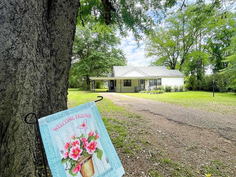 Dont miss this quaint countryside manor! Complete with towering trees and tranquility, this 3 Bedroom/ 2 Bath home is nestled in the most perfect part of the Pineywoods. Enjoy the wild irises dotting the farmhouse exterior from the covered front porch. Walk inside and admire a lovely chandelier adorning the massive living area. Beautiful wood plank flooring welcomes you into the large dining and kitchen area. Use the plentiful counter space to whip up Sunday lunch and picnic on the lush grounds of the 1.18 acre property. Separate storage shed is available along with many more extras!