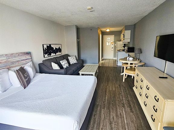 Experience coastal living at its best! This 5th-floor studio at the Sea Mist Resort offers comfort, convenience, and lovely partial ocean views — all at an exceptional value. Whether you're searching for a relaxing beach getaway or a smart investment opportunity, this fully furnished condo is ready for you. It comfortably accommodates up to 4 guest with 1 full size bed, and a sleeper sofa. Step out onto your private balcony to soak in the ocean breeze and take in the coastal scenery. Inside, enjoy a bright and efficient layout featuring a full kitchen with modern appliances — including a microwave and stove, plus a private bath, dresser and closet storage, cable TV, and complimentary resort Wi-Fi. Whether you spend your days unwinding by the pool or exploring Myrtle Beach’s dining, shopping, and entertainment just minutes away, this condo serves as the perfect home base for your beach adventures.