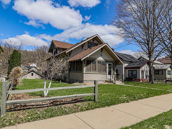 Outstanding Arts & Crafts style home located in an established neighborhood. 3 Bedrooms, 2 Baths, formal dining room w/wonderful built in buffet, natural woodwork & hardwood floors all beautifully finished. Kitchen has custom built cabinets & granite counter tops. Main floor bedroom w/deep closet. Excellent storage throughout. Some upstairs shelving is moveable. Inviting front porch w/newer storm door. Replacement windows "Andersen" tilt style upstairs & "Marvin" on main level. Newer bath fixtures & flooring. Vinyl siding on exterior, new roof in Aug. 2019. The walkout basement w/tall ceilings is perfect for a woodworker or a "hobby" area and has easy access to the new 2 Car Detached Garage. (See Additional Disclosure Page for more details) Deck overlooks backyard, garage and updated landscaping. This home is meticulously cared for and updated. Just move in and enjoy! All the work has been done.