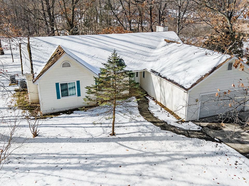 Ranch home located on 1.15 wooded lot with a view of Triangle Lake. The home features 3 large bedrooms, 2 and half bathrooms, a sunroom/three seasons, a huge living room, and an office. Large living room has a bay window and beautiful crown molding. Dining room has a large gas fireplace that is open to the kitchen with an island that has a built-in stove. Hardwood floor located in the kitchen, dining room, and large foyer with wainscoting. Throughout the home is beautiful crown molding and wainscoting. First-floor laundry has shelving and a door leading outside and a half bath just off the large garage. Primary bedroom features wainscoting, a large bathroom, and a walk-in closet. The second full bathroom features a skylight. Hall has cherry hardwood floor. Basement has tile on the floor, and the wall is poured with a brick look. Fence in area on the side of the home. Storage shed in the backyard that has a cement floor and electric. Furnace is approximately 7 years old, and the air conditioning is approximately 6 years. The home features a home generator and a water softener. Back yard has a large deck just off the sunroom to enjoy those warm summer nights overlooking the wooded backyard and the lake.