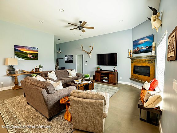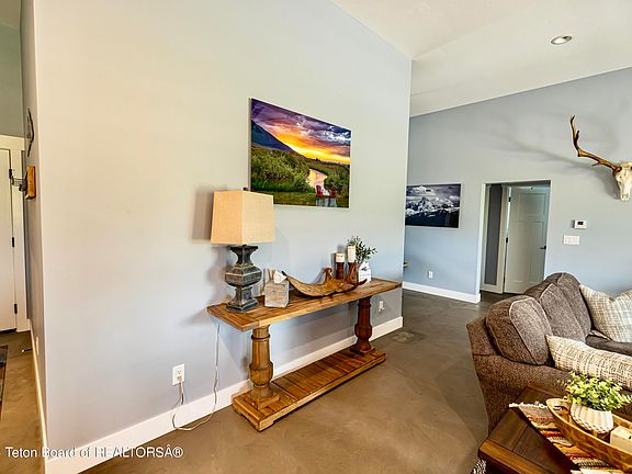 This pristine & well located home checks all the boxes for easy mountain living! Walk/bike to local schools/restaurants. Quick access to Ski Hill Rd./Grand Targhee! A 3 car garage houses all your recreation equipment & LP smart siding & concrete patios are attractive & low maintenance. The backyard is fully fenced. The home is a high quality build by a local contractor & enjoys 10 ft. ceilings, radiant in-floor heat, a modern kitchen with concrete counters & an office in addition to the 3 bedrooms. The neighborhood enjoys fiber optics, paved roads & walking/biking trails. The home is being sold fully furnished inside with a new Hot Spring brand hot tub outside. Short term rentals allowed in the neighborhood & the city of Driggs plows the streets & maintains the parks/open space.