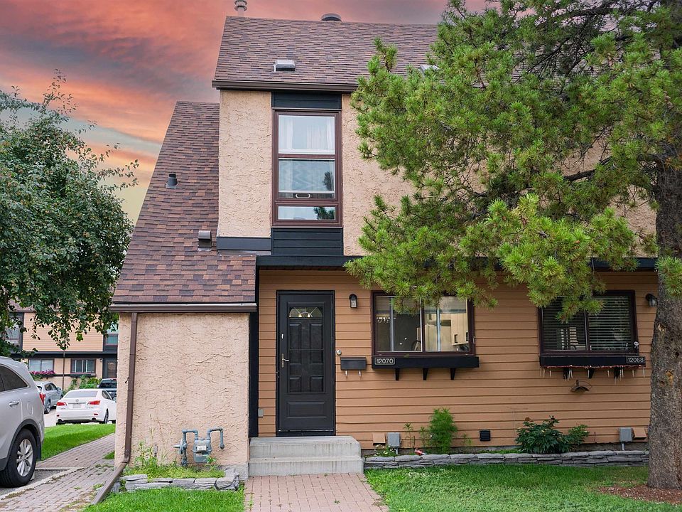 Welcome to this charming end-unit townhouse in Blue Quill, where comfort meets convenience. The main floor invites you in with a bright kitchen that flows easily into the dining area, perfect for weeknight dinners or weekend brunch. The living room offers a cozy retreat with rich hardwood flooring and a beautiful stone finished fireplace, creating the ideal spot to relax or entertain, with a handy half bathroom nearby. Upstairs, three well-sized bedrooms and a full bathroom provide a peaceful space for rest and privacy. The unfinished basement is ready for your vision, whether you need extra storage, a home gym, or a future rec room. Your private backyard is beautifully landscaped, offering a quiet escape for morning coffee or summer barbecues. Visitor parking is close at hand, and with Century Park transit, parks, shopping, and the Whitemud Creek Ravine just minutes away, this home makes it easy to enjoy both nature and city living.