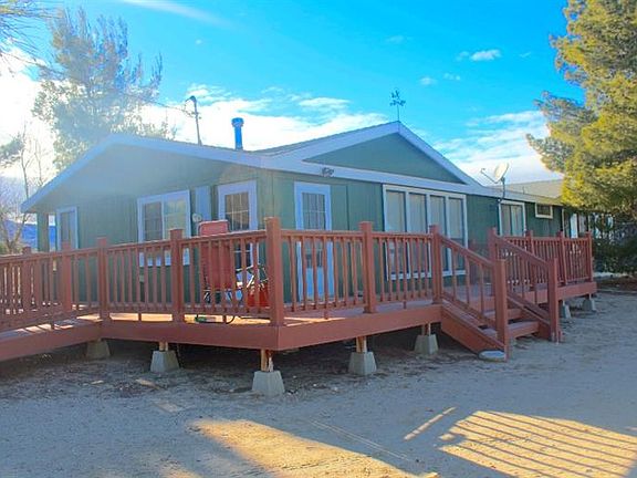 There is plenty of space at this desert oasis where you'll find a beautifully remodeled manufactured home on permanent foundation! This home has recently been redone with new appliances, roof, septic system, heating and air unit, full bathroom remodels, and new exterior paint. The sturdy wrap around deck lends plenty of space to enjoy the quite outdoors or for a great BBQ and pool party. In fact the above ground pool comes with the property too! The property also features leased solar panels which are $125 a month reducing your electricity bill to $1. Detached from the home is a 2 car garage and a large 12X24 storage shed for anything you may need. The property is fenced and well laid out with fruit trees and ponderosa pines. Located in the Snow Line School District and zoned for horses you'll want to give this one a look.