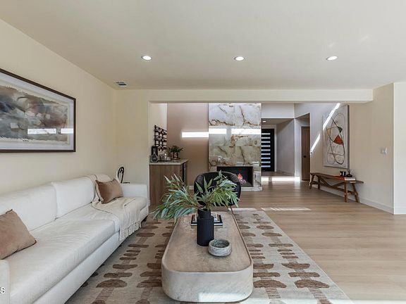 Welcome to this stunning single-story home in the highly desirable Porter Ranch community, offering 3 bedrooms, 2 bathrooms, a sparkling pool and spa, and breathtaking canyon views. Perfectly situated within the award-winning Castlebay Lane Elementary and Granada Hills Charter school districts, the property is just minutes from local parks, hiking trails, The Vineyards at Porter Ranch, and convenient freeway access. Extensively renovated, the home features a brand-new kitchen with modern cabinetry, Taj Mahal quartzite countertops and backsplash, a waterfall island with pendant lighting, state-of-the-art LG appliances, and a built-in bar with beverage/wine refrigerator. Both bathrooms have been beautifully updated with new showers, vanities, toilets, fixtures, and lighting, while the primary suite includes a new soaking tub. Additional upgrades include new laminate flooring throughout, designer-tiled fireplaces in the living room and primary suite, recessed lighting with smart switches, new windows and doors, fresh interior and exterior paint, a new entry and garage door, a new flat roof section, and LG washer and dryer. The backyard is an entertainer's dream with a resurfaced and retiled pool, new pool equipment, upgraded fencing and gates, fresh concrete work, and new landscaping with irrigation. This move-in ready residence combines modern luxury with everyday comfort in one of Porter Ranch's most sought-after neighborhoods.