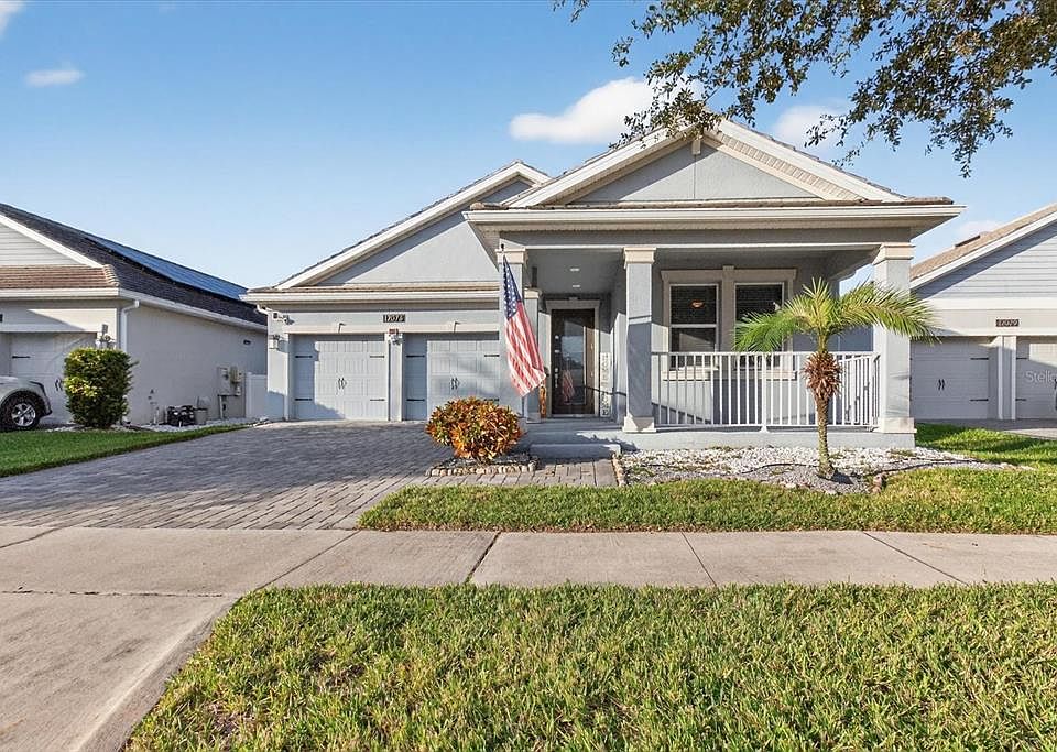 Welcome to this one-story retreat with a wonderful pool at 12073 Imaginary Way in Orlando! Built in 2019, this beautifully maintained 3BR/2BA home offers 2,089 sq. ft. of open living space with a modern kitchen that flows into the dining and living areas—perfect for entertaining or family gatherings. The property also features a bonus space that can be converted into a room/office space. Step outside to your private backyard oasis featuring a heated saltwater pool, ideal for relaxing or hosting guests. This energy-efficient home includes solar panels, two Tesla batteries that generate the entire house except the pool, two EV wall chargers for electric vehicles also conveyed. Latest update: brand-new water heater installed June 2025. Located in the desirable Storey Park community, close to shopping, dining, and major highways. Move-in ready and waiting for you!