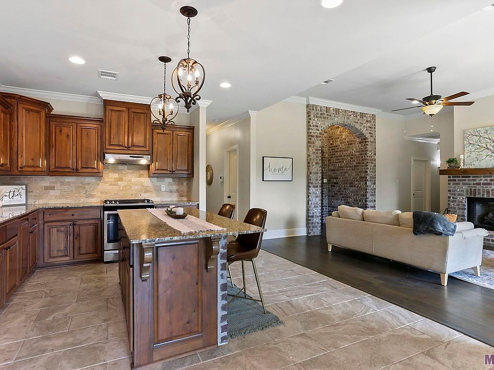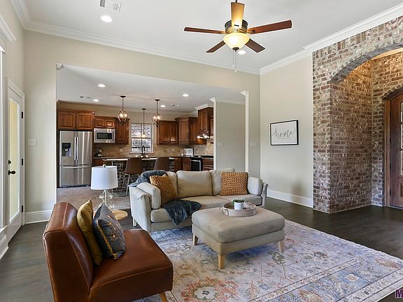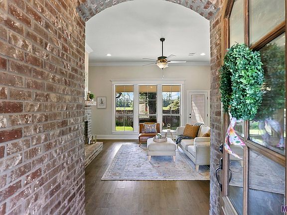 This Beautiful home in Dutchtown Meadows has 3 bedrooms, 2 baths and an office!! You will love all the custom details, from the oversized front door with brick entryway, brick feature fireplace w/ custom wood mantle in the den and milled tray ceiling in the main bedroom!! The kitchen is open to the main living area and has beautiful custom wood cabinets, center island with bar seating, granite countertops, a large walk-in pantry, stainless appliances and a gas range. The attached oversized dining space is great for entertaining with plenty of room for an additional seating area and a bay style window allowing lots of natural light. The den is open and airy with the brick fireplace as the center focal point and a wall of windows looking out to the back patio. In the main bedroom you will find a spacious retreat with a beautiful milled wood tray ceiling and French doors to enter into the relaxing main bath. In the main bathroom is a soaking tub, large custom tiled shower with frameless glass, double vanity sinks, water closet and walk-in closet. The double entry garage also has an added storage area and the backyard is fully fenced. No flood insurance is required and the home has not flooded. Come and see this beautiful home TODAY :)
