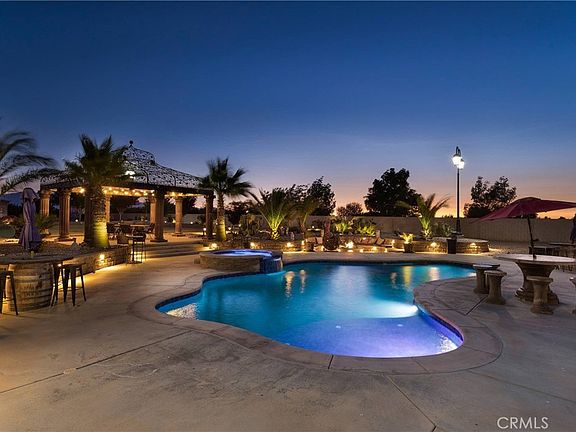Escape to this residence where every detail embodies luxury and comfort. This spacious home boasts a seamless flow between refined indoor living and the spectacular outdoor oasis, including oversized inground pool, jacuzzi and drop-down fire pit perfect for hosting a wedding or weekend gatherings, ground solar lighting, mature fruit trees that produce figs, apricots, pomegranate, and more.