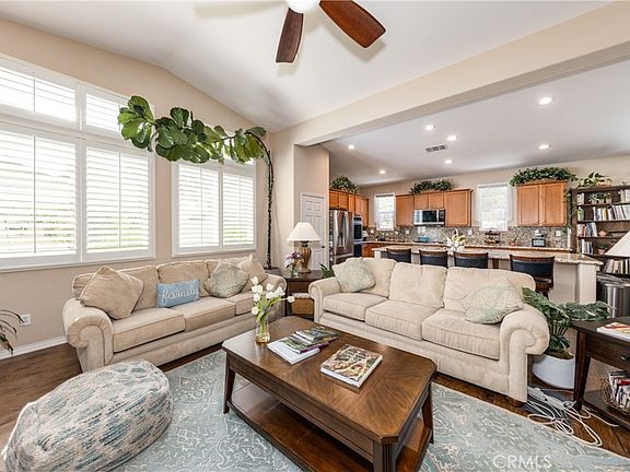 HUGE PRICE REDUCTION! You have to see this beautiful upgraded home in the desirable Reserve at Crafton Hills. This residence features an open floor plan with 3 bedrooms (plus a study that can serve as a 4th bedroom) and 2.5 bathrooms. Inside, you’ll find custom shutters, custom-designed bookcases flanking the gas fireplace, and a matching built-in credenza in the dining area with lighting and pull-out shelving. The kitchen features granite, newer stainless steel appliances: a microwave, double oven, and dishwasher. The master suite has been refreshed with new counters, sinks, flooring, and freshly painted cabinets. The exterior was freshly painted, and the backyard is designed for easy enjoyment with artificial turf, expanded concrete covered patio - the side yard includes raised, auto-drip grow boxes and a mini-orchard with a variety of fruit trees all supported by an updated smart watering system. Additional highlights include: 220V outlet for EV charging, Pre-wired for solar, Motion-sensor garage lighting and abundant storage, Digitally controlled watering system, Custom-designed security screen door. The Reserve offers exclusive amenities including a clubhouse, pool and spa, BBQ areas, and lighted tennis and pickleball courts. Conveniently located near Crafton Hills College, shopping, dining, Yucaipa Regional Park, and with easy access to the 10 Freeway — this home truly has it all!