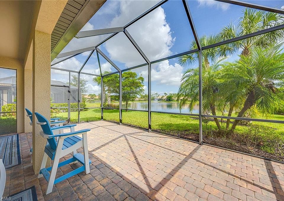 Beautiful Lake Views! Turnkey furnished and absolutely stunning! Enjoy lakefront living in this beautifully appointed four-bedroom home, complete with a versatile den/office, two full baths and a spacious two-car garage. Offering 2,176 square feet of open-concept living, this home features a bright and airy layout with a showstopping oversized lanai that overlooks the serene lake. The gourmet kitchen is a chef’s dream, showcasing a large island with granite countertops, stylish backsplash, under-cabinet and overhead lighting, walk-in pantry and a deep sink — ideal for entertaining. Plantation shutters throughout the home. Adjacent to the kitchen is a formal dining room that flows seamlessly into the expansive family room filled with natural light. The private primary suite offers tranquil lake views, a walk-in shower, dual vanities, a generous walk-in closet and a separate linen closet for added storage. There are easy-to-use exterior manual hurricane shutters for added protection. In the gated community of Camden Square, residents enjoy resort-style amenities including a pool with cabana, basketball court, tot lot and a cozy outdoor fire pit. Ideally just minutes from RSW Airport, JetBlue Park, Hammond Stadium, shopping, dining and the white-sand Gulf beaches — this is Southwest Florida living at its best.