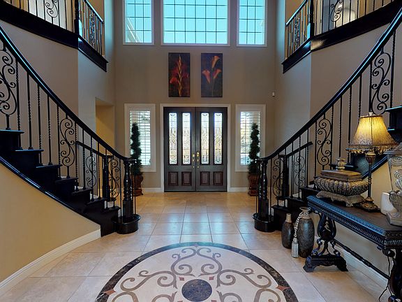Located in the Prestigious gated community of Moorpark Country Club Estates! This stunning Golf course VIEW Home features, 5 bedrooms, 5.5 baths, just under 6,000 sqft with travertine floors, recessed lighting, crown molding, and a downstairs Private Office! The expansive gourmet kitchen with granite counter tops, large center island, and stainless steel appliances opens to a great room enhanced by a fireplace and built-in media center. The elegant dual staircase with custom wrought iron railings leads you to the Large Master Suite that features a sitting area with fireplace, a luxurious master bathroom with a jacuzzi tub, his and her sinks & a walk-in closet. Enjoy the sun and take in the panoramic views from the balcony! There are four additional bedrooms, each with their own bath and a upstairs laundry room! Professionally landscaped home is an entertainers paradise with an infinity pool/spa, fireplace, built-in BBQ and a custom pergola that overlooks the Golf Course & glorious mountain/city views to complete this amazing home!