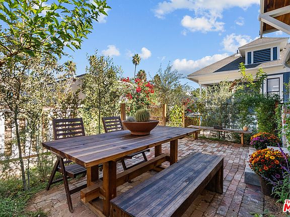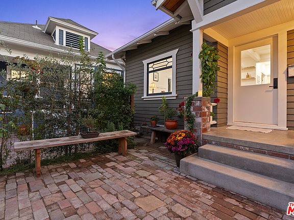 Step into a piece of history with this extensively renovated 2 bedroom, 1 bath Craftsman home, dating back to 1914, in the heart of Echo Park. Situated within the storied Angelino Heights HPOZ, this exclusive TIC community features four standalone homes, tucked behind a charming white picket fence along "Bungalow Row". As you enter through a private gate, you'll be greeted by a freshly painted facade, and an inviting private patio dressed by beautifully appointed landscaping. This home seamlessly blends vintage charm with modern conveniences, showcased in an open-concept layout bathed in natural light that highlights the new hardwood floors. The dining area and kitchen, with board and batten wainscot, features butcher block countertops, floating wood shelves, subway tile backsplash, a convenient pot filler, and new stainless steel appliances. The adjacent living room has coffered ceilings and vintage windows that overlook the front patio. There are 2 bedrooms that share a new full bath. Upgrades include a new tankless water heater, new mini split HVAC, stack laundry closet, brass cabinet and door hardware, new lighting throughout, new pathway lighting, professional landscaping and a private side patio off the bedroom. This home offers an easy commute to DTLA and blocks away from local hot spots like Echo Park Lake, the Farmers' Market, Cookbook, Donna's, Le Fe, Quarter Sheets Pizza, Bar Flores, Little Joy, grocery stores and more. Don't miss your chance to reside in one of the most coveted historic neighborhoods on the Eastside.
