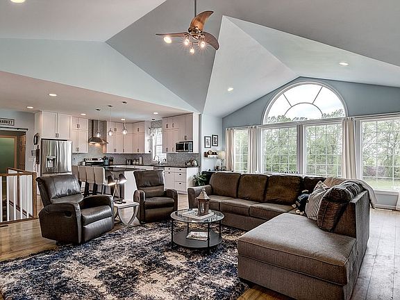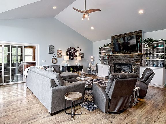 Perfect location with 7.4 beautiful acres w/200 red and silver maple trees. Relax out your walk out lower level to your patio and new gazebo watching the sunset. Pride in ownership best describes your stunning open concept kitchen with granite counter tops with large center island perfect for entertaining. Tons of windows bringing in lots of natural light off the back of the home. Cozy fireplace in the living room, sun room off of the living room with included hot tub and portable fireplace. Master suite with WI closet, walk-in shower, 10' ceiling and sitting area. Enjoy your mudroom with main floor laundry off of garage. Walk out lower level with separate patio door for your guests, large windows, craft area with built-ins, full bath with additional bedroom storage area in mechanical room. Now lets talk about your 72x40 heated shed with concrete floor in front with office, running hot/cold water, drain and RV waste hook up plus extra storage in the back area for all the toys.