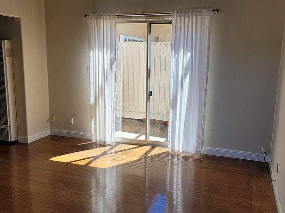 Amazing Location -- One-bedroom in convenient downtown location available now. This unit features hardwood floors, high-beamed ceilings, and a private courtyard. Living room has wall-unit air conditioning. Kitchen includes dishwasher and gas range. Water and garbage included, 1 carport space