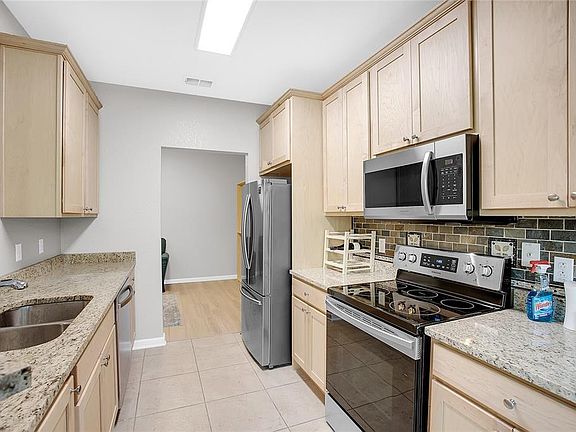 This updated, furnished, ground floor, 2 bedroom/2 bathroom condo, is in the peaceful Bella Trae Community. The property features laminate flooring, granite countertops, and upgraded cabinets. The kitchen has stainless steel appliances, and a breakfast nook for you to sit an relax in. There are ceiling fans throughout, including the office (can be used as a bedroom) and the enclosed lanai. This property comes with a full sized washer and dryer and is partially furnished. There is an attached one-car garage and driveway for easy parking. The Bella Trae Community has amenities galore: heated pool, fitness center, game room, putting green, media center and a full time activities director. You're only minutes away from shopping, dining, and entertainment. Rent includes basic cable, internet and pest control. Access cards to the Clubhouse are currently $10 each for anyone 18 years or older and vehicle stickers are $15 each. Two vehicles maximum, no oversized or corporate vehicles allowed. Interested parties will need to apply through the HOA as well, as they have a strict 35-day approval process.
