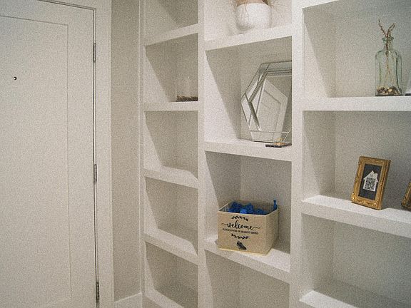 Stylish neutral colorsGourmet kitchenShiplap wallsExtensive trim-workMicrowave built into islandBuilt in office areaOpen floor plan