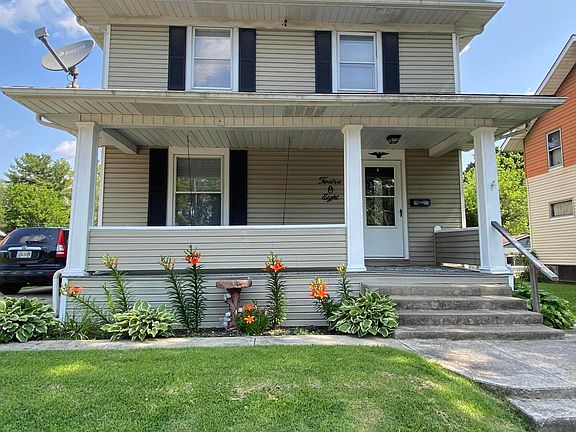 Welcome home to this wonderfully maintained 3 bedroom 1 1/2 bath home. Nothing to do here but move in and relax. Enjoy the large front porch with a comfort swing to enjoy your early morning coffee and/or evening beverage The entry into the home has a cute cherub light that accents the living room with a wood burning fireplace. The home has been freshly painted throughout and refinished hardwood floors. All room have new ceiling fans, new electric has replaced old knob and tube wiring, wired security system, both baths are attractive with the upper bath being totally refreshed. The kitchen has a stove and nice cabinets. The mud room off the kitchen gives extra space for storage. The basement is full and unfinished is perfect for more storage or create your own useable space. All 3 bedrooms are upstairs and that are nicely painted, wood floors and spacious. All windows have blinds and sheer curtains. Newer roof, new furnace installed early 2025, approx 10 years a new electrical service cable to the home and meter socket installed. Backyard is large and comes with a kids play set and a fire pit. Full fenced in yard with two double gates. Storage shed for lawn tools. Must see this one before it's gone! Easy to show. Priced to sell.