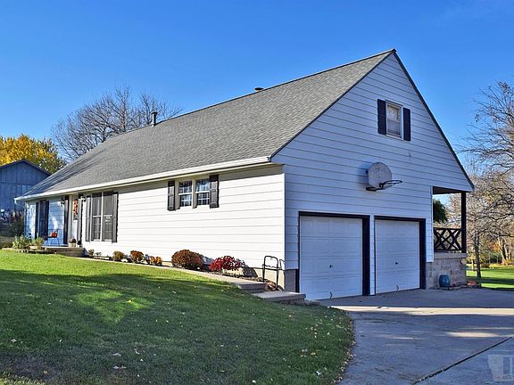 Spacious family living you will find in this 3 bedroom, 2 1/2 bath home with 2-car garage on 1.73 Acres of land. Home features living room with vaulted ceiling and fireplace that opens into dining room with doors out to covered concrete patio/deck. Kitchen has wood cabinets, eating bar and appliances included. 2 bedrooms and bath on main level. Upstairs has an open loft/den, bedroom and half bath. Full, finished basement with large family room, 3/4 bath, laundry room and workshop. Gorgeous yard with trees and backyard creek. Storage shed included.