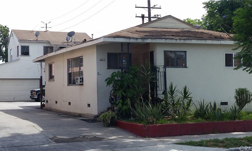 Triplex in North Long Beach, front house 2 bedrooms 1 bath, back building upstairs 1 bedroom 1 bath, and a studio downstairs, with a two car garage attached to rear unit and a covered patio behind front house