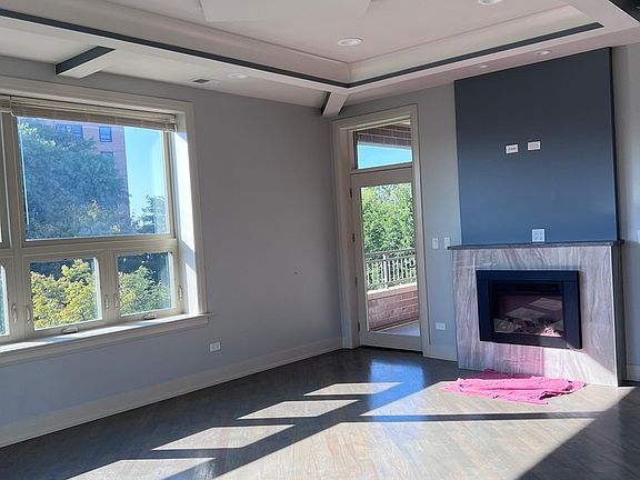 Beautiful Building and beautiful unit ! 3 bed 2 bath Quartz countertops, hardwood floors, in-unit laundry, recessed lighting, structured closets, balcony, rainfall shower, ceramic bath, jacuzzi tubs, electric fireplace, indoor and outdoor parking, and an elevator in the building.Must see