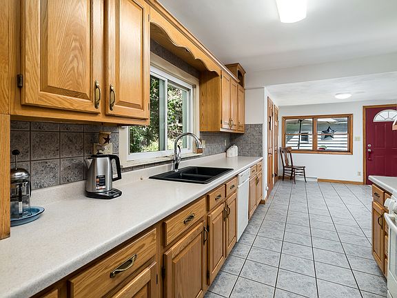 Tree lover's Paradise! This country home sits on 1.65 (mostly wooded) acres. Animals welcome as this property is zoned AG and already has a fenced area. You can finally get a fainting goat!! Plenty of space to spread out and enjoy peace and quiet in this home nestled in the woods. Original Douglas Fir flooring add character and warmth. Custom made cabinets and extra large eat-in space in the sunny kitchen. Large Master bedroom suite with red oak flooring and HUGE 8x10 walk-in closet that will make all your friends jealous! Bedroom 2 also has a HUGE 8x10 closet, there is no lack of storage here. Many different uses for the rec space in the lower level with a full walk-out to the patio. There are 3 full baths in the home with rustic cabinetry. Convenient main floor laundry. This home is filled with light and country style charm.