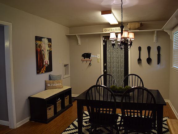 OFFERED FOR SALE BY BABCOCK REAL ESTATE :: CALL ANITRA BABCOCK (580) 317-0006 FOR FURTHER INFORMATION OR TO VIEW For those seeking a four bedroom home and finding options are few and far between, look no further. This move-in ready home offers a spacious master bedroom along with three additional bedrooms, one of which is currently utilized as a laundry room. Should someone wish to use it as a bedroom without the washer and dryer in the closet, they can easily take advantage of the connections located in the garage. I love the idea that if you have a lot of laundry you tend to, you can use both! There are two hall bathrooms, one with a modern stand-up shower and the other with a classic tub and expansive vanity space. The spacious living room is so welcoming, with French doors leading out to the great yard beyond. Just off the living area is a light and bright dining room and kitchen that had a complete overhaul, including cabinets, counter tops and hardware, subway tile backsplash, modern pendant lighting, built-in microwave, smooth top range, and more. Think Joanna and Chip Gaines farmhouse style, a mix of modern and classic touches. This home is great for entertaining inside, while just through double French doors you have more than enough options to entertain outside, whether it be from the large back deck or huge back yard with lovely mature trees. There is even an area set aside for a fire pit or patio set. A detached garage, accessible by a covered breezeway, has ample storage and work area space. This property, in an excellent neighborhood, has much to offer at an affordable price. Don’t miss out! Contact Anitra Babcock, Listing Broker, at (580) 317-0006 to schedule a personal property tour. Directions to Property: From Jackson St in Hugo turn south onto S 13th St. Travel south on S 13th St to E Duke St. Turn right onto E Duke St. Property is on the left.