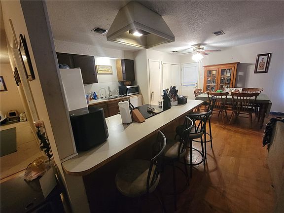 Brick homeOpen kitchenCovered patioEat-in breakfast bar