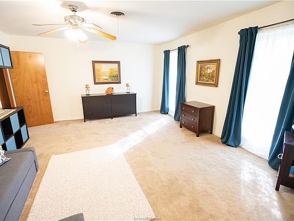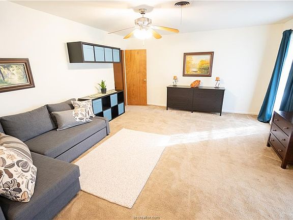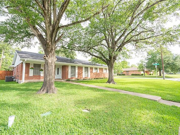This centrally located home has the charm of an established neighborhood with excellent neighbors & mature trees. The home has a newer roof, siding, exterior doors, sprinkler, & air conditioner. In the large backyard, you can listen to birds, enjoy fruit trees, picnic, & entertain guests on the large patio. The home has lots of natural light & two living areas. The front living area is being used a playroom/guest room. It could be a large dining/living room. It has many built in bookshelves & cabinets, solid wood doors, warrantied waterproof floors, & attic storage. The two-car garage has built in shelving, a workbench, & storage closet. It is located near Blinn College & a TAMU bus route.