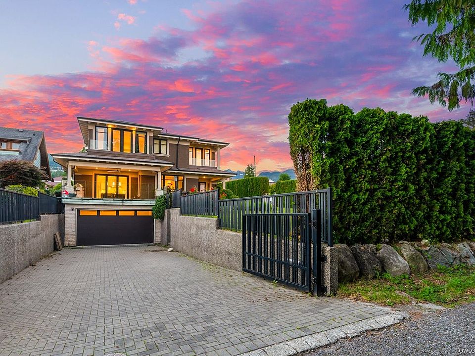This remarkable contemporary home sits on a quiet corner lot in the heart of Ambleside with views of the Ocean and Lions Gate Bridge. Almost 4,800 sq/ft over 3 levels w/ Elevator, 7 bedrooms, 6 full baths & 1 half bath, living room, family room, Wok kitchen, media room, 3 sets of washers/dryers! Radiant floor heating with A/C, kitchen outfitted with high end Miele appliances, Euroline doors, Italian tiles and hardwood flooring throughout. Entertain with the built in BBQ on the huge heated south facing patio. Legal one bedroom with own kitchen, washer/dryer with separate entrance. Easy access to shopping, Ambleside Beach, golf course and West Vancouver’s finest schools.