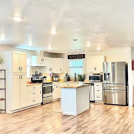 This property is nestled on almost 1 acre with a large hobby shop building that has a new roof and foam insulation. There is also a newly built cottage with endless possibilities. It is on its own septic and hvac. When walking into the house you will be welcomed by the large open living space and natural lighting. This home was updated less than 2 years ago with a fully renovated kitchen, bathroom, new flooring throughout, paint, electrical and hvac. This is a property you won't want to miss out on.