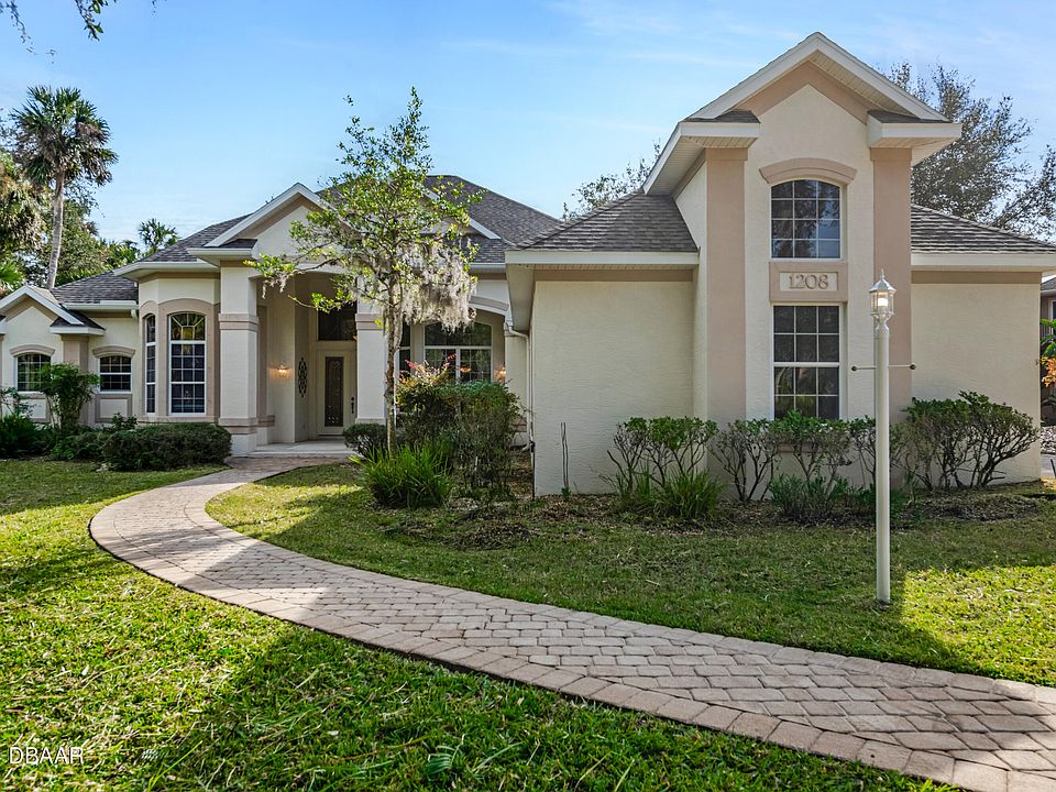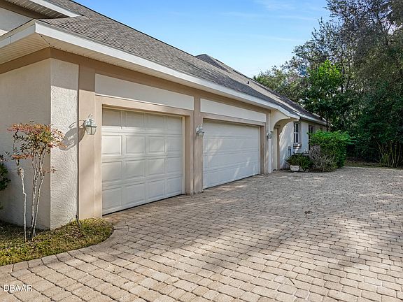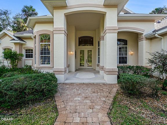 Stunning 4-Bedroom Home on nearly 1 Acre in Prestigious Halifax Plantation. Discover the perfect blend of elegance and comfort in this expansive 4-bedroom, 3-bath home, ideally located on the golf course on a premier cul-de-sac lot in sought-after Halifax Plantation community. From the moment you step through the grand double leaded-glass doors into the welcoming foyer, you'll be captivated by the soaring 12-14-ft coffered ceilings, custom floor-to-ceiling library bookshelves and the seamless open floor plan that flows effortlessly to the outdoor living space. Enjoy picturesque golf course views, this property offers the perfect combination of serenity and privacy. Recent updates include a new roof (February 2023) and a new dual HVAC system (December 2024), ensuring modern comfort and efficiency. The heart of the home is the chef's kitchen, featuring ample cabinetry, granite countertops, a built-in desk, pantry, island, breakfast bar, and solar tubes for natural light. The split-bedroom layout ensures privacy, with a luxurious master suite boasting his-and-hers closets, dual vanities, a spa tub, and a doorless glass block shower. Step outside to the expansive screened lanai, where you can relax, entertain, or dine while enjoying the tranquil golf course views. The backyard offers space for pets or play, while the oversized 3-car side-entry garage and spacious driveway provide ample room for vehicles, toys, and guests. You'll love the oversized laundry/utility room, complete with counter space, a sink, additional refrigerator, wine cooler, and abundant storage, a dream for any homeowner! Halifax Plantation offers an exceptional lifestyle, with a championship golf course, clubhouse, fine dining, sports pub, pro shop, tennis courts, and a swimming pool. Enjoy outdoor adventures at nearby Bulow State Park and the convenience of shopping, dining, and easy access to I-95, all just minutes from the beach! Don't miss this rare opportunity to own a home that truly has it all. Schedule your private showing today!