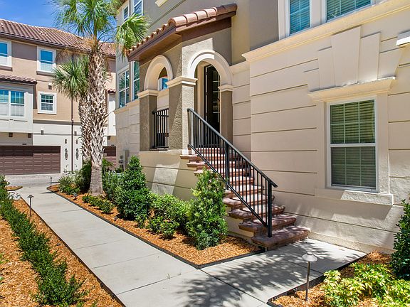 Welcome to 1208 Lobelia Drive, a stunning 4-bedroom, 3-bathroom, & 2 car garage townhome situated in the heart of Fountain Parke at Lake Mary, a guard-gated community. This beautifully maintained home offers a perfect blend of modern amenities and timeless charm. The exterior of the home exudes curb appeal with its Mediterranean-inspired architecture, featuring a combination of warm beige and tan stucco. The inviting front entrance includes a grand staircase leading up to a covered porch with arched doorways, adding to the home's sophisticated design. The open-concept living room features large windows that flood the space with natural light, highlighting the sleek tile flooring and contemporary light fixtures. The kitchen boasts quartz countertops, stainless steel appliances, a large island with a sink, and custom cabinetry, providing ample storage and prep space. The adjacent dining area is perfect for hosting family dinners and entertaining guests, featuring ample natural light from multiple windows. The space is further enhanced by elegant French doors that lead to a charming balcony, providing a seamless transition between indoor and outdoor living. The expansive master bedroom includes a walk-in closet and a beautifully designed en-suite bathroom with dual vanities, a walk-in shower, and elegant fixtures. Three additional bedrooms offer generous closet space and large windows, ideal for family members or guests. The property includes 3 bathrooms, all featuring modern fixtures and finishes, providing both style and functionality. Water, irrigation, trash, and landscaping is included in the monthly HOA dues. The community is guarded 24 hours a day. Multiple community amenities include a resort-style pool with a hot tub, tennis court, pickleball courts, putting green, dog park, walking paths, clubhouse with billiards and card tables, and a gym. Easy access to I-4, with a variety of shopping and restaurants nearby. Downtown Orlando is just 25 minutes away, Daytona Beach is under 45 minutes, and New Smyrna Beach is under an hour! Disney and Disney Springs are less than an hour away, with Seaworld and Universal Studios just under 40 minutes from the property. Enjoy a suburban family lifestyle with plenty of golf courses, sporting complexes, and lakes nearby! Schedule your private tour today!