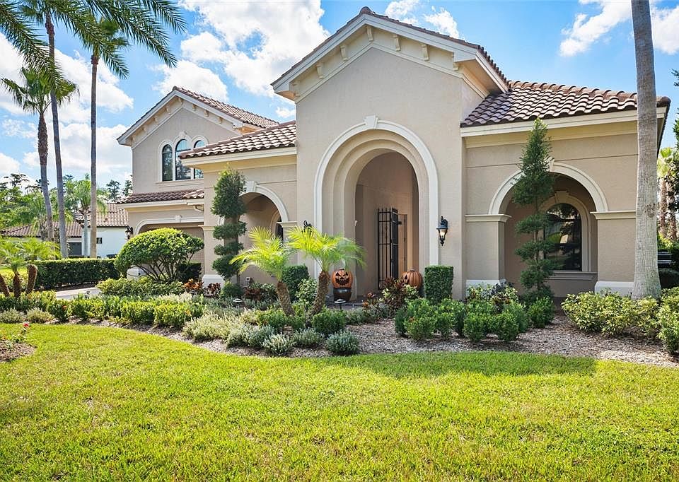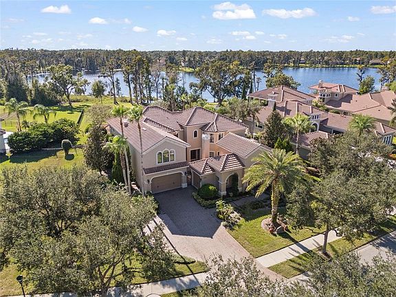Welcome to Ladera Estates, one of Lutz’s premier gated communities, where privacy, elegance, and lakefront living converge. This executive estate spans 5,564 square feet of refined living space and offers an unmatched blend of craftsmanship, functionality, and modern upgrades, designed for those who appreciate luxury with purpose. A stately tile roof and pavered drive framed by manicured landscaping lead to a charming front courtyard, setting the tone for the home’s timeless sophistication. Within the courtyard is a private in-law suite with a full bath and its own entrance, ideal for extended family or long-term guests. Enter the front door to soaring ceilings, architectural details, and walls of glass that create a bright, open flow perfect for entertaining or quiet retreat. This five-bedroom, six-bathroom residence features a newly renovated chef’s kitchen that anchors the heart of the home, with professional-grade appliances, quartz surfaces, custom cabinetry, and an oversized island and bar top built for gatherings. Beyond, the expansive great room transitions seamlessly to the formal dining room, a sitting room with fireplace, and a dedicated theater room offering the perfect space for movie nights or entertaining guests. Step outside to your own private resort and enjoy the sprawling pool, grilling pavilion, and outdoor kitchen overlooking the tranquil waters of Lake Merry Water. The expansive backyard provides room to relax or entertain while taking in peaceful lake views. Whether hosting a sunset dinner or enjoying a quiet morning coffee by the lake, this setting delivers the Florida lifestyle at its finest. Practical features elevate everyday living, including a whole-house on-demand generator, newer mechanical systems, and a three-car garage with abundant storage. Located in a private, gated setting yet only a short drive to Tampa, this home offers the perfect balance of seclusion and convenience. Every detail, from the stone finishes to the integrated sound system, reflects thoughtful design and enduring quality.