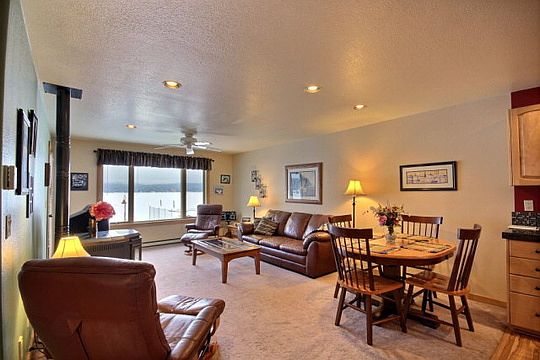 Lakeview Condo! Enjoy lakefront access without the high cost. Located directly across the street from Legacy Park and Mile High Marina this condo is just 2 blocks from downtown McCall. Designated covered parking plus extra parking for guests. Recently updated kitchen has granite tile countertops and laminate style flooring. Living room has pellet stove and access to the covered deck. Main floor bedroom and full bath. The downstairs has three additional bedrooms and two full baths including a master suite with private bath. The laundry room and additional storage area are also located on the lower level.
