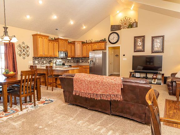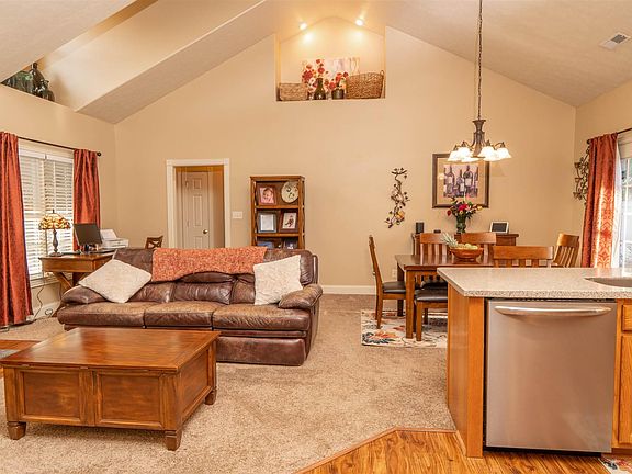Yorktown schools! This home has been well maintained and is completely move in ready. You will love the high ceilings in every room and the open concept layout. This home features a huge great room with living room, dining room, and kitchen all open to each other. The kitchen has lots of cabinetry, solid surface counters, and kitchen appliances stay. The dining area and living room are both spacious and is a versatile space. This home has a split floor plan with the primary bedroom on the south side of the home and the 2 additional bedrooms and full bath on the north side of the home. The primary bedroom offers plenty of space plus an ensuite bath with large tub, separate shower, double sink vanity, and walk in closet. The laundry room is also on this side of the home and features extra tall cabinets, great for storage. The other two bedrooms are also nice sized and have large closets for storage. This quality built home has lots of upgrades like vaulted and tray ceilings, larger trim, solid surface counters, rounded corners and more. Outside the landscaping goes all the way around the house and is well maintained and beautiful. The front of the home features a nice large covered porch and the back yard is privacy fenced with a white vinyl privacy fence and has a nice patio. All of this in a home that is conveniently located between Muncie and Yorktown, just minutes from shopping, and less than 10 minutes from IUBMH and BSU. This home is a must see! **Possession to be 11/1**
