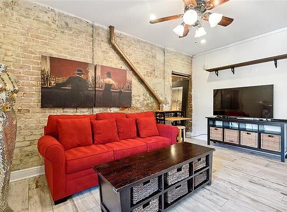 Now available for lease, this move-in ready furnished condo offers flexible, stylish living in the heart of the French Quarter. Designed for convenience, the one-bedroom layout features large French doors that open to a private patio and a landscaped shared courtyard. Interior highlights include exposed brick walls, an updated kitchen with granite countertops and mahogany open shelving, and abundant natural light throughout. The bedroom opens to a second private, walled courtyard an additional outdoor space for work or relaxation. This unit includes two private storage compartments, in-unit comforts, and lease terms starting at 2 months. Located in a residential building approximate to restaurants, transit, and the downtown area, the condo combines historic character with modern updates. Furnished and available now.
