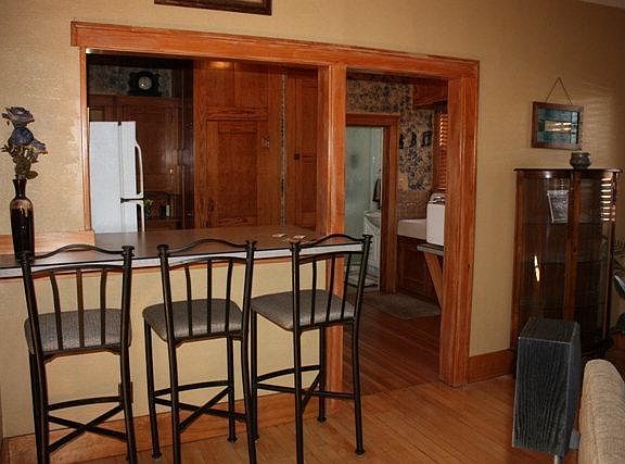 Perfect bungalow! Great character and updates throughout. Large master bedroom with 2 built-in closets. Bar seating area between kitchen and living room. Full basement for storage. 2 year old roof. Located in established neighborhood close to downtown Aurora. Property zoned commercial. All appliances including clothes washer & dryer negotiable. HOME WARRANTY INCLUDED.