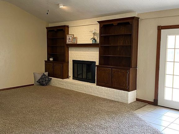 This 1,556 sf, 3 bed, 2 bath home is conveniently located near Moore High School. The family room features tall ceilings, with built-in shelving that surrounds a cozy gas fireplace. The sunny kitchen with attached dining area, has plenty of storage and natural light. The primary bedroom features 2 closets and an ensuite bathroom, while the main bathroom is equipped with a jetted bathtub. Extras include central heat and air, tons of storage, two-car garage, a spacious yard with mature trees, and privacy fencing. Quiet neighborhood!