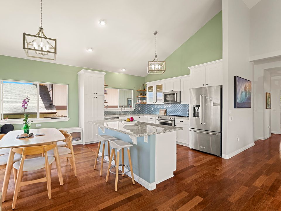 Large islandOcean viewSweeping ocean vistasOpen floor planStainless steel appliancesNatural lightWell-appointed kitchen