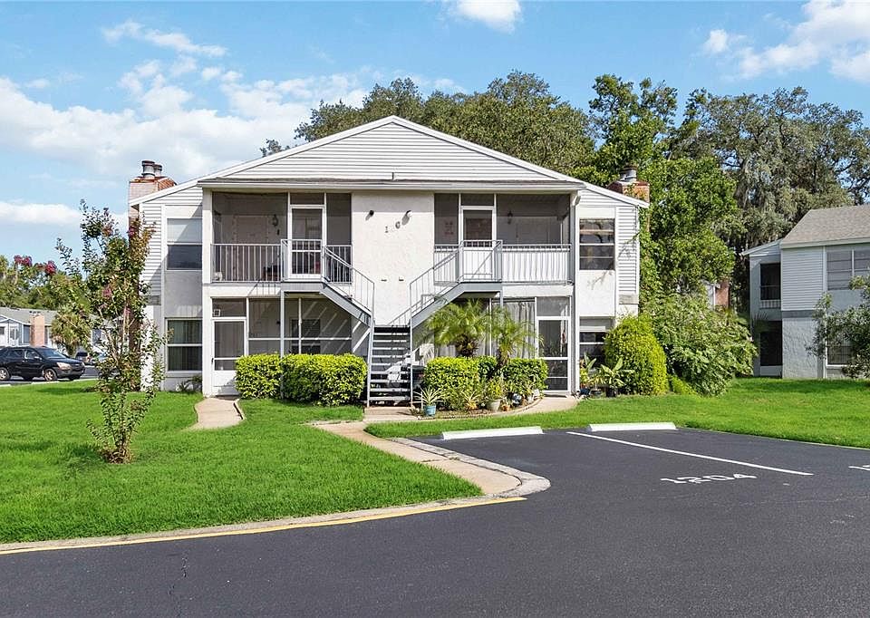 Priced to sell quickly. Discover this two-bedroom, two-bathroom condo offering a split floor plan and 912 sq. ft. of living space. Located on the second floor, this unit boasts vaulted ceilings with abundant natural light, creating an open and inviting atmosphere. The covered and screened porch includes a private laundry closet, while the spacious living room with a fireplace and the dining room with a pass-through window to the kitchen provide comfortable living spaces. The kitchen comes with a full pantry for added convenience. Community features include a clubhouse, fitness room, tennis court, racquetball court, community pool, and a dock extending out onto Lake Minnie. Centrally located, and close to Seminole State College, restaurants, shopping, medical facilities, and public transportation. Property is being sold as-is. Don’t miss out on this prime investment opportunity!