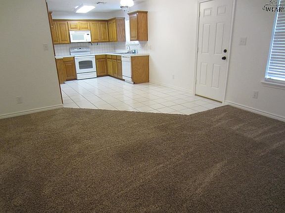 Exceptional 3/2/1 in Iowa Park with open living area, lots of cabinets, tile in kitchen and baths, new carpet elsewhere, recently painted interior, walk-in closets in all bedrooms, roof less than 6 months old, large fenced back yard, covered patio.