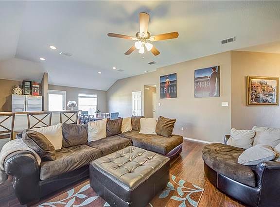 Adorable 4 bdrm home, open concept living, great for entertaining and outdoor activities in the over-sized backyard. located in a cul-de-sac across the street from walking trails and greenbelt. Newly added wood flooring and updated bathroom tile and backsplash. New stainless steal appliances. community amenities include 2 pools, water park, walking and biking trails. Highly acclaimed Northwest ISD. This home is a Must See!