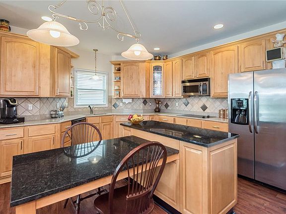 Stunning Custom Villa (former display), leaded glass entry & ext doors, exquisite millwork thru out incl arched entrys w/ fluted casings, 6 blt in book cases, 3 pc crown molding, custom columns, sculptured & coffered ceilings, hard surface floors, 9 ft & vaulted ceilings, 3 gas fireplaces, stunning lighting, 6 panel doors w/satin nickel levers, surround sound & security sys, immaculate kitchen w/ 42 in” maple cabinets w/ crown molding & leaded glass display cabs, Legacy quartz counters w/quartz & tile back splash, granite center island & blt in breakfast table & SS appls incl. dbl oven, micro, dish wash, fridge & glass ceramic stove. High vaulted Hearth w/massive beams, floor to ceiling stone fireplace, DR w/ coffered ceiling & crown molding, Master BR w/coffered ceiling, bay window & huge walk in closet w/luzury MB w/dual adult ht vanities, marble tub & shower & sep commode room. LL wet bar, FR w/ blt ins, Exec office w/ glass dbl French doors, Media room & 2nd BR w/ lg full BR, Deck Location: Ground Level, Suburban