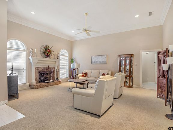 Step into this beautifully maintained 3-bedroom, 2-bathroom home, perfectly situated in a prime location convenient to restaurants, shopping, and all the amenities Tyler has to offer. The inviting living room boasts 12 foot ceilings, exquisite crown molding and a cozy gas log fireplace, creating the ideal space for relaxation. Just off the kitchen, a second gathering area offers flexibility for hosting or everyday living. The kitchen is a chef’s dream, featuring a gas cooktop, stainless steel appliances, granite countertops, and a spacious island, complete with a refrigerator included. A thoughtfully designed laundry room includes storage and a convenient sink, adding a touch of practicality. Outside, a large fenced backyard provides plenty of room for entertaining, gardening, or simply enjoying the outdoors. This home has plenty of storage inside and if you need more, there is a storage building in the backyard! And be sure to make note of the climate controlled storage closet in the garage! Modern features like foam insulation and a recently installed roof ensure year-round comfort and peace of mind. With its seamless blend of charm, functionality, and location, this home is a true gem waiting for you to call it your own.