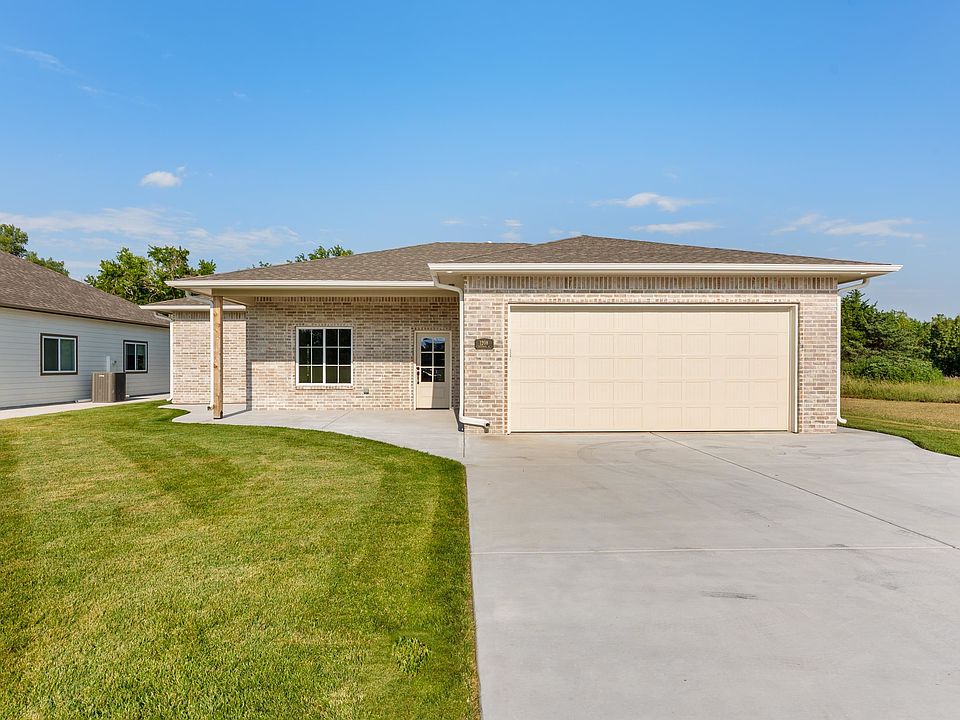 SELLER TO PAY $2,500 IN BUYERS CLOSING COSTS WITH AN ACCEPTABLE OFFER. Brand new patio home in Halstead’s Cedar Meadows addition! This 2 bedroom, 2 bath ranch offers a zero-entry design with an open floor plan, luxury vinyl flooring, and quartz countertops throughout. The spacious kitchen features an island, eating bar, pantry (which doubles as a safe room), and dining area, opening to a bright living room with access to the covered patio. The private primary suite includes a walk-in closet, dual vanities, and oversized shower. Additional features include main floor laundry, oversized 2-car garage, sprinkler system, and freshly sodded yard. Quality craftsmanship by Nine Rock Construction makes this home move-in ready with low-maintenance living in a quiet small-town community just minutes from Newton or Wichita.