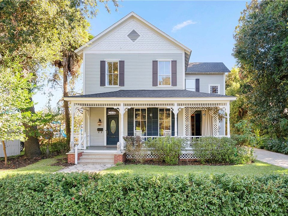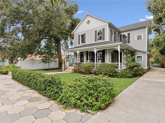 Constructed in 1910, this beautifully renovated Victorian home in the heart of historic downtown Brunswick has been carefully maintained and offers a rare combination of historic character and move-in-ready convenience. The interior features grand high ceilings, original hardwood floors, five original fireplaces, and preserved period details throughout. On the main level, the home boasts multiple living areas, including a formal dining room, a refined study, an office, and an open and modern kitchen equipped with stainless steel appliances. Upstairs, four bedrooms and three full bathrooms provide ample accommodations, with a walk-in, floored attic for additional storage. Many recent updates inside and out include a new water filtration and HVAC system. The exterior is highlighted by a wraparound front porch that offers space for outdoor dining and entertaining, while the screened back porch provides a private area to relax and enjoy the well-landscaped backyard. The home is set on a large lot with street access from both the front and back sides. At the rear, a spacious outbuilding provides flex space with the opportunity for additional modification. The home's central location offers immediate access to shops, restaurants, and Glynn Academy. An exceptional chance to own a liveable piece of historic coastal Georgia