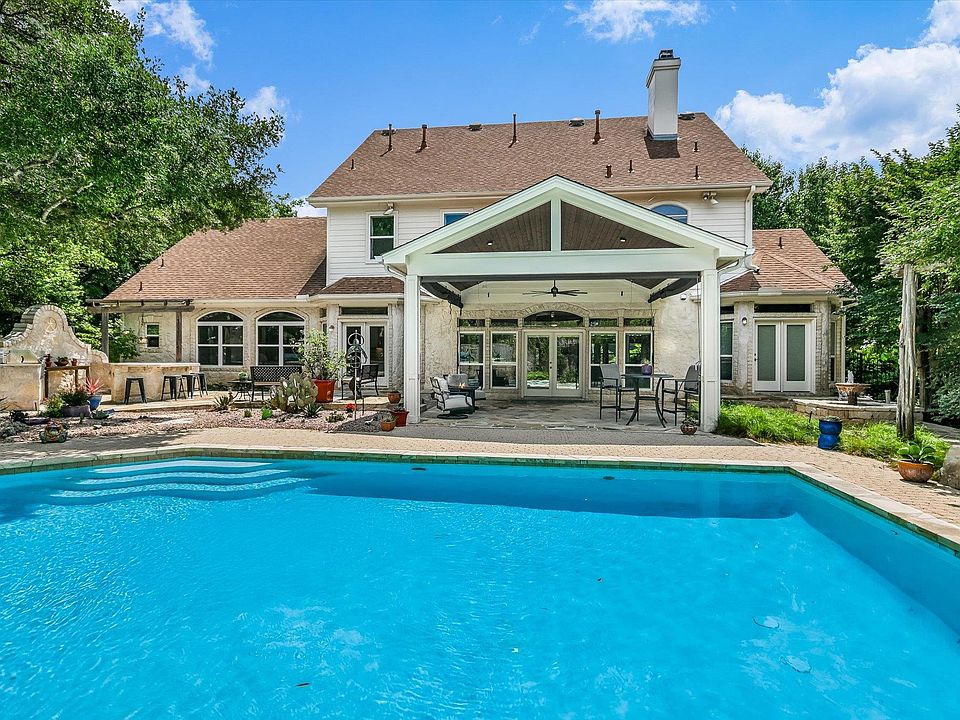 Tucked away on a rare double cul-de-sac in one of Westlake’s most coveted enclaves, 1208 Verdant Way blends timeless elegance with relaxed luxury on a lush 0.39-acre lot. Surrounded by native landscaping and just 14 homes on the street, this 4-bedroom, 3 full-bathroom residence offers exceptional privacy—all while being walkable to all three exemplary Eanes ISD schools and minutes from downtown Austin. Inside, the home welcomes you with soaring ceilings, abundant natural light, and elegant millwork. The main living room features a fireplace, custom built-ins, and seamless flow into both formal and casual spaces. A dedicated dining room, two spacious living areas, a breakfast nook, and a beautifully updated kitchen with modern appliances and pantry cater to every lifestyle. The upstairs primary suite is a serene retreat with a fireplace, private covered porch access, and a luxurious bath complete with soaking tub, walk-in shower, double vanity, and large walk-in closet. A Jack-and-Jill bath connects two guest rooms, while a separate flex space—tucked away from main living areas—offers ideal use as a media room, gym, or playroom. Step outside to your private resort: a sparkling pool, outdoor stone kitchen with built-in grill, an impressive covered patio and a stunning rose-covered pergola. Four-sides stone masonry and thoughtful updates—including windows, appliances, and living areas—complete the package. 1208 Verdant Way is more than a home—it’s a rare opportunity to enjoy the best of Westlake: privacy, elegance, and walkable access to top-rated schools, and minutes from downtown Austin.